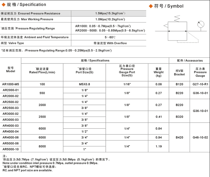 AR減壓閥,型號有AR2000,AR3000,AR4000,AR5000